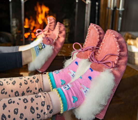 Give your feet a little extra comfort with our range of mules, slippers, mocassins and slipper boots. Predominantly UK-made for Skyeskyns by carefully chosen and experienced suppliers, our slipper range offers options for both men and women, as well as children, all sheepskin-lined. The natural properties of our sheepskin slippers mean that your feet will be cosy and warm but not too warm. The wool will adapt to your temperature as well allow your feet to breathe and not feel sweaty. Perfect for tired and achy feet and limbs as well as delicate toes.