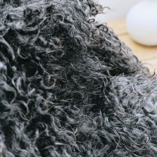 SQUARE SHEEPSKIN CUSHION IN LINEN