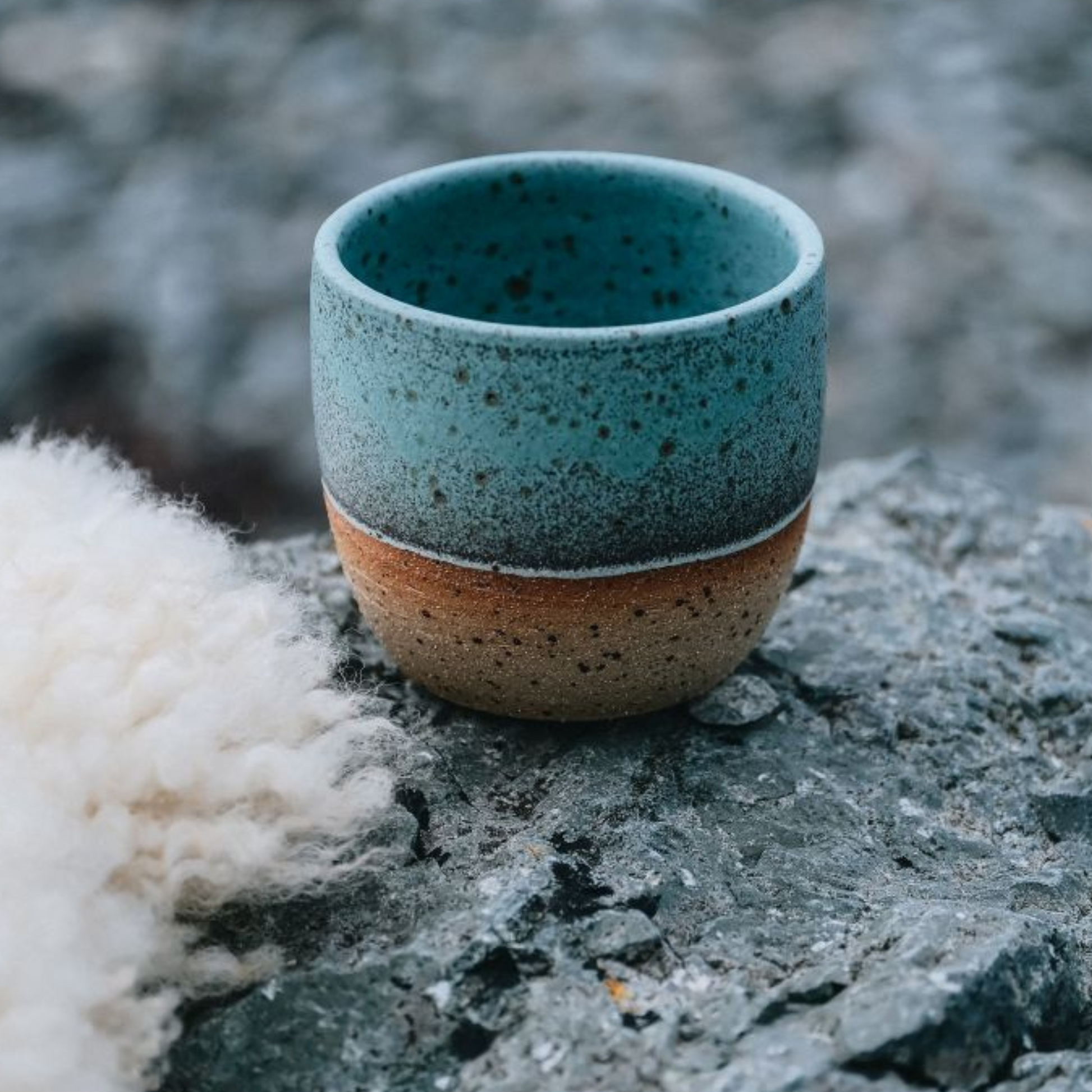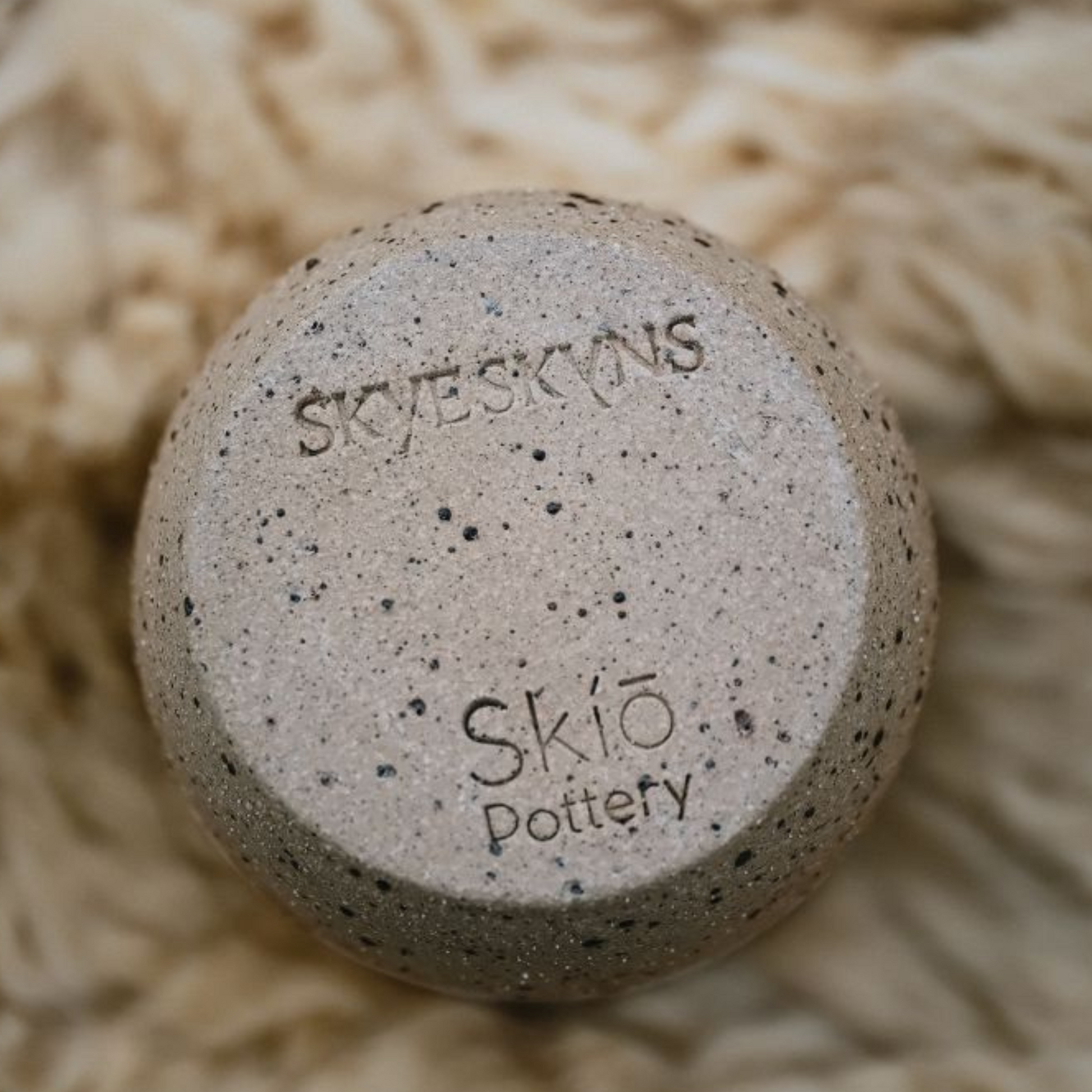 Hand thrown here in Waternish by Skio potters. Kayti and Luke, these unique small tumbler cups are ultimately beautiful and practical. Inspired by the local landscape, and made using clay mixed in with Skye sand for added texture and visual impact, they bring a sense of nature and harmony whenever you want to indulge in a brew.