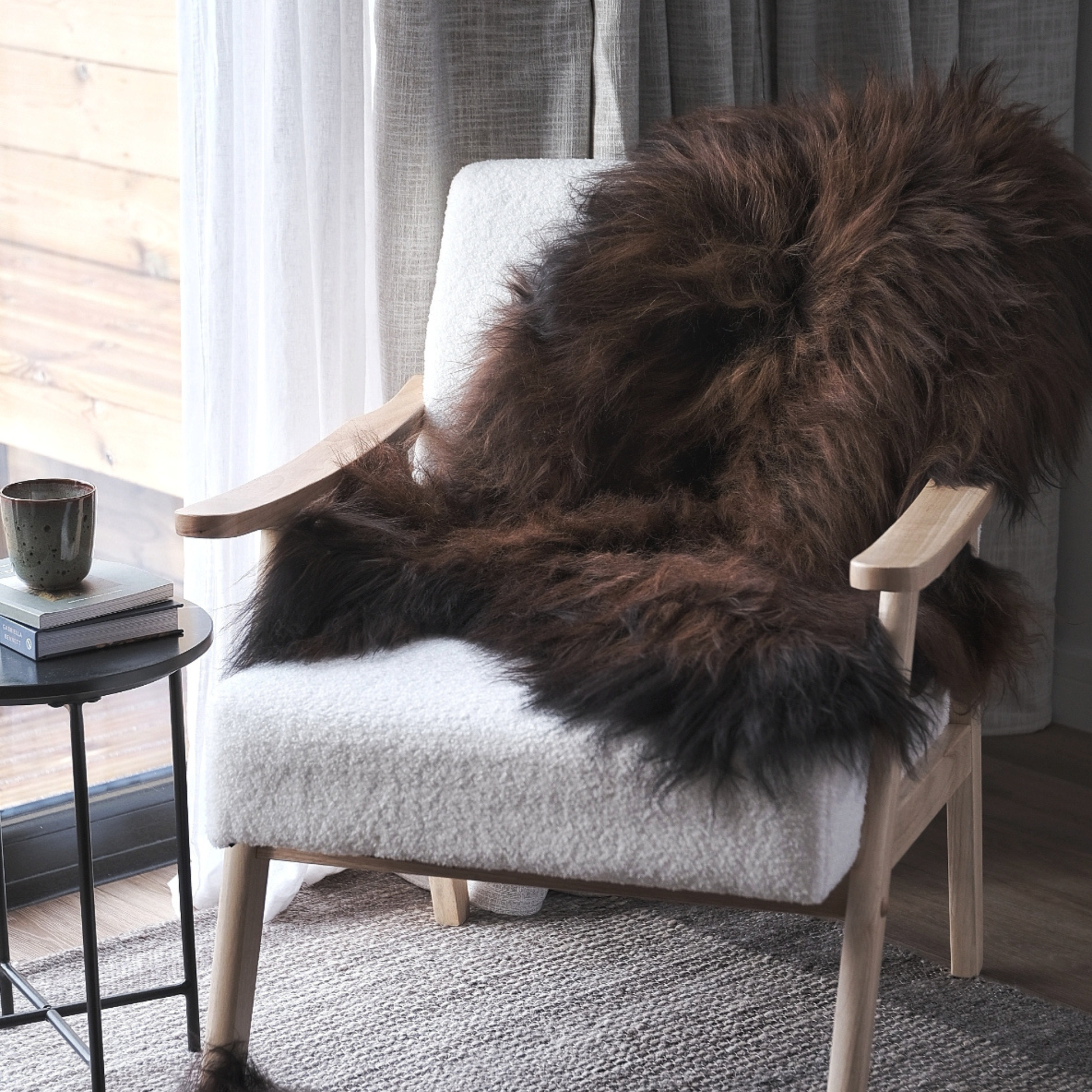 Placed on a light plain carpet, stone or wooden floor, this Icelandic sheepskin will be coveted by both family and friends. The height of luxury on an upholstered chair, it will also look stunning thrown on the back of a sofa.