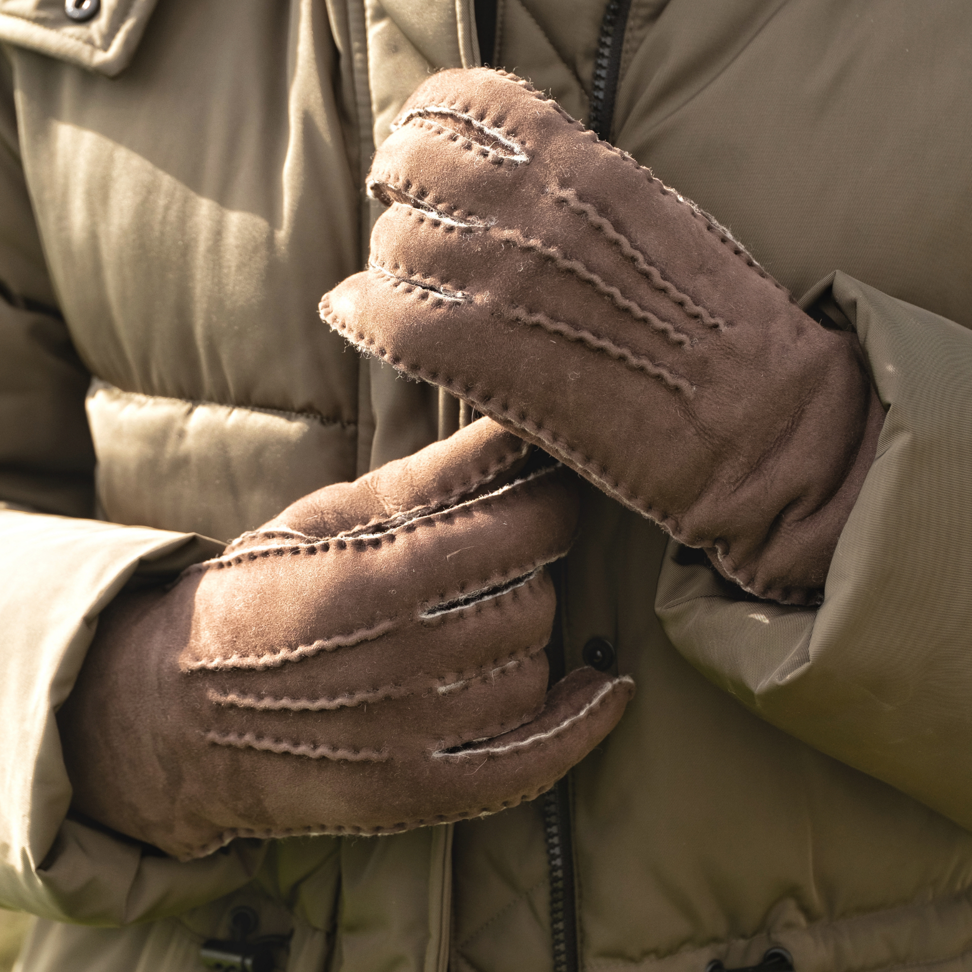 100% natural sheepskin, the glove uppers are handmade with gorgeous, soft, suede and have a close cropped, dense wool lining. Beautifully handstitched to reveal a hint of white trim, our gloves will protect your hands from the harshest weather while keeping the cold at bay.