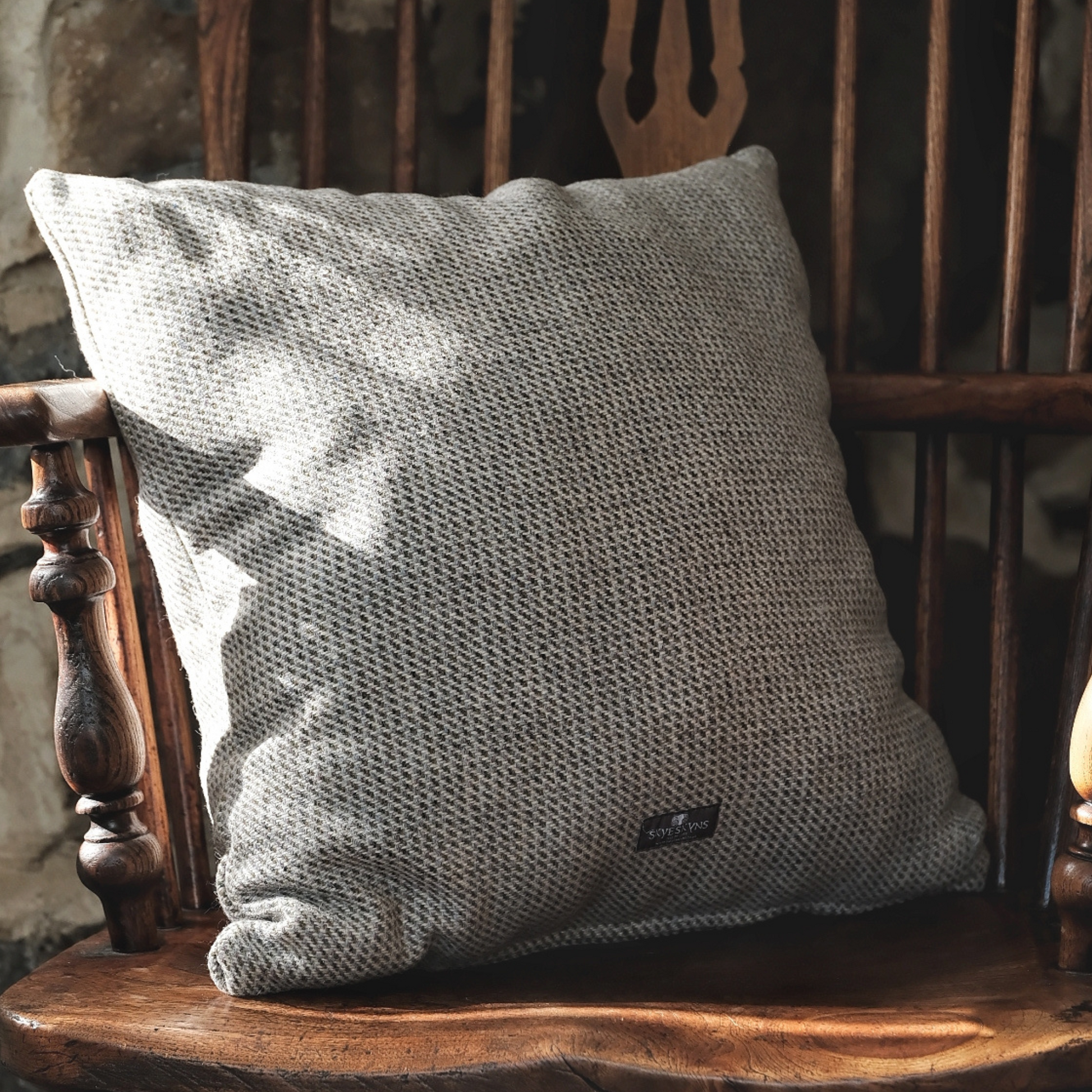 Our Skyeskyns tweed, designed and pedal-woven for us on Skye by Skye Weavers, is the perfect design for this gorgeous cushion, using British wool in grey tones with hints of green and purple, reminiscent of Waternish skies and colours in Summer. The tweed cushion was then handmade in Stirling by Britton Manufacturing using recycled thread and zips.