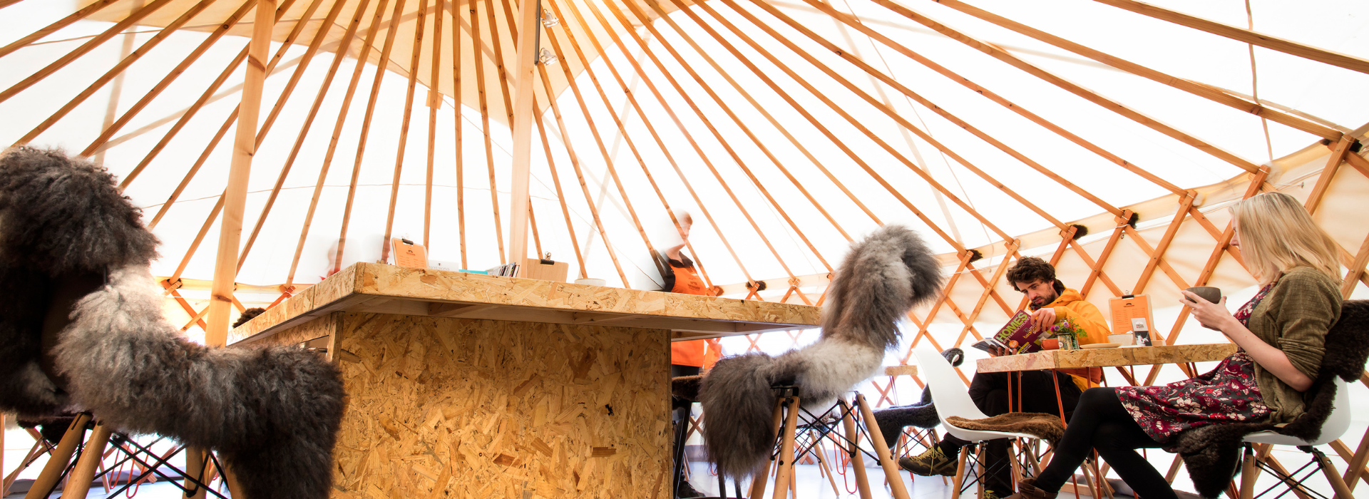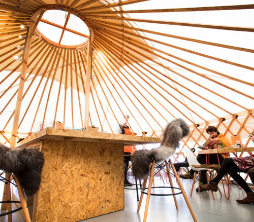 Our seasonal pop-up tea tent features a wood-burning stove,